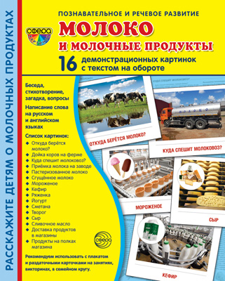 Дем. картинки СУПЕР Молоко и молочные продукты.16 демонстрационных картинок с текстом на обороте (учебно-методическое пособие с комплектом демонстрационного материала 173х220 мм, познавательное и речевое развитие)