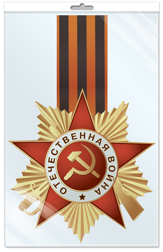 *ФМ-13606 ПЛАКАТ ВЫРУБНОЙ А4 В ПАКЕТЕ. Орден с Георгиевской лентой (блестки в лаке)