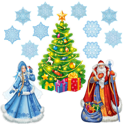 *КБН-17712 Комплект наклеек на окна А4+. Помощники Деда Мороза (2 набора, многоразовые, видны с обеих сторон)