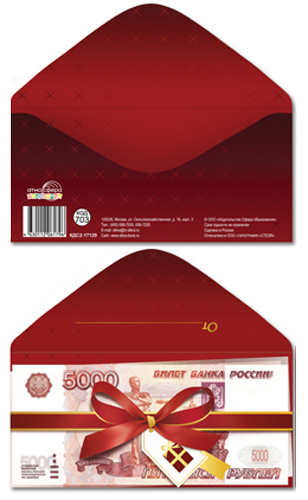 КДС2-17129 Конверт для денег на склейке. 5000р (без текста, золотая фольга, деньги)