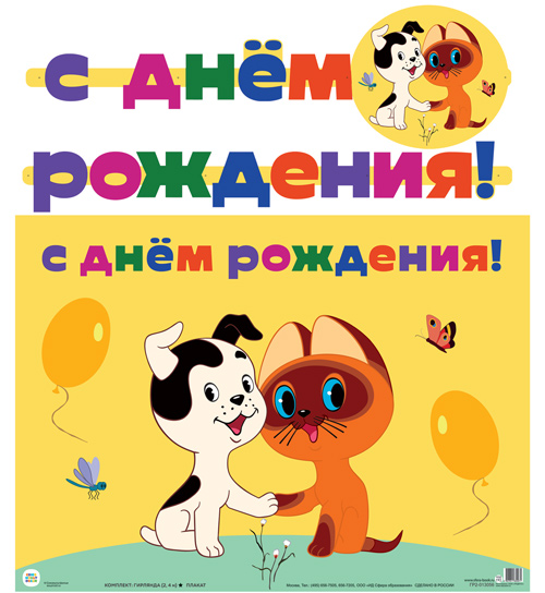 ГР2-13056 Гирлянда с плакатом А3 (2,4 м) С Днем рождения! Из м-ф Котенок по имени Гав (с блестками в лаке)
