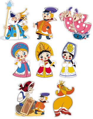 *КФМ2-12674 Комплект вырубных мини-плакатов. Герои сказки Вовка в тридевятом царстве (8 персонажей из мультфильма) (с блестками в лаке)