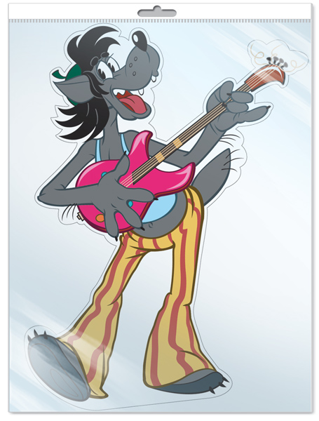 Ф2-12662 Плакат вырубной А3. Волк с гитарой из мультфильма Ну, погоди! (с блестками в лаке)