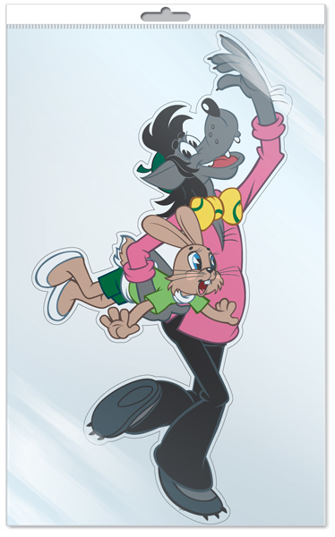 Ф2-12663 Плакат вырубной А3. Волк танцует с зайцем из мультфильма Ну, погоди! (С блестками в лаке)