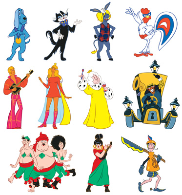*КФМ2-12645 Комплект вырубных мини-плакатов. Герои сказки Бременские музыканты (11 персонажей из мультфильма) (с УФ-лаком)