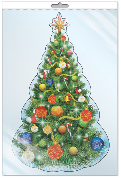 *ФМ-10942 ПЛАКАТ ВЫРУБНОЙ А4 В ПАКЕТЕ. Олененок с елочкой (блестки, в индивидуальной упаковке, с европодвесом и клеевым клапаном)