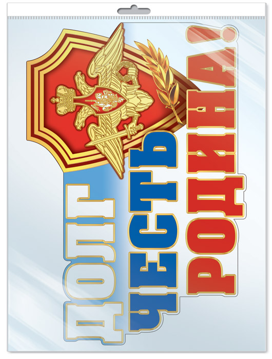 *Ф-8031 ПЛАКАТ ВЫРУБНОЙ А3 В ПАКЕТЕ. Эмблема Вооруженных сил РФ (блестки, в индивидуальной упаковке, с европодвесом и клеевым клапаном)