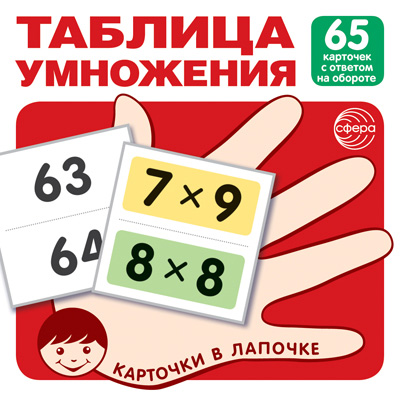 Карточки в лапочке. Таблица умножения. 65 карточек с ответом на обороте