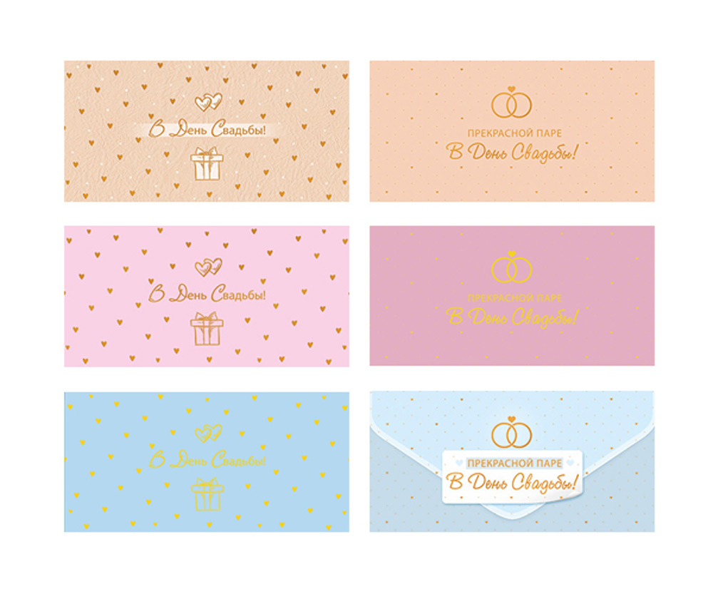 *КД-16211 Комплект конвертов для денег. Свадебные (6 штук на склейке)