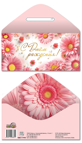 КДС2-17445 Конверт для денег на склейке. С Днем рождения! (женский, цветы, золотая фольга)