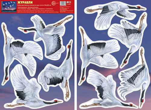 Н-17203 Набор Наклеек А3+ В ПАКЕТЕ. Журавли на 2-х листах В ПАКЕТЕ (цветные, многоразовые, видны с обеих сторон)