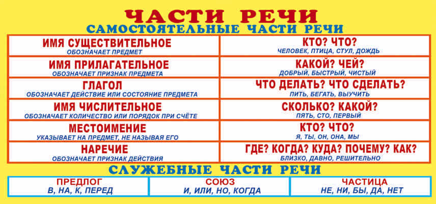 ШМ-8845 Карточка-шпаргалка. Запомни! Части речи (формат 61х131 мм)