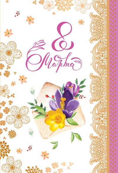 ЦВ-13204 Открытка среднего формата. 8 марта (текст, золотая фольга)