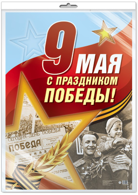 *ПЛ-13084 ПЛАКАТ А3 В ПАКЕТЕ. 9 мая. С Праздником Победы! (в индивидуальной упаковке, с европодвесом и клеевым клапаном)