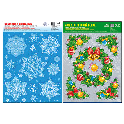 *КБН-17764 Комплект новогодних наклеек А4+. На Рождество (2 наклейки, серебряная металлизация, многоразовые)