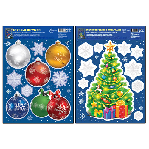 *КБН-17760 Комплект новогодних наклеек А4+. Ёлка новогодняя (2 наклейки, видны с обеих сторон, снежинки из белил)