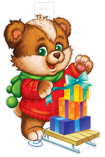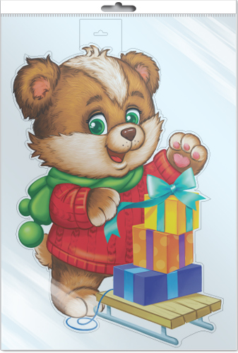 Ф-16594 Плакат вырубной А3. Зимний мишка с подарками (двухсторонний)