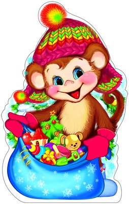 Ф-9140 Плакат вырубной А3. Обезьянка с подарками (блестки в лаке, УФ-лак) - группа Животные