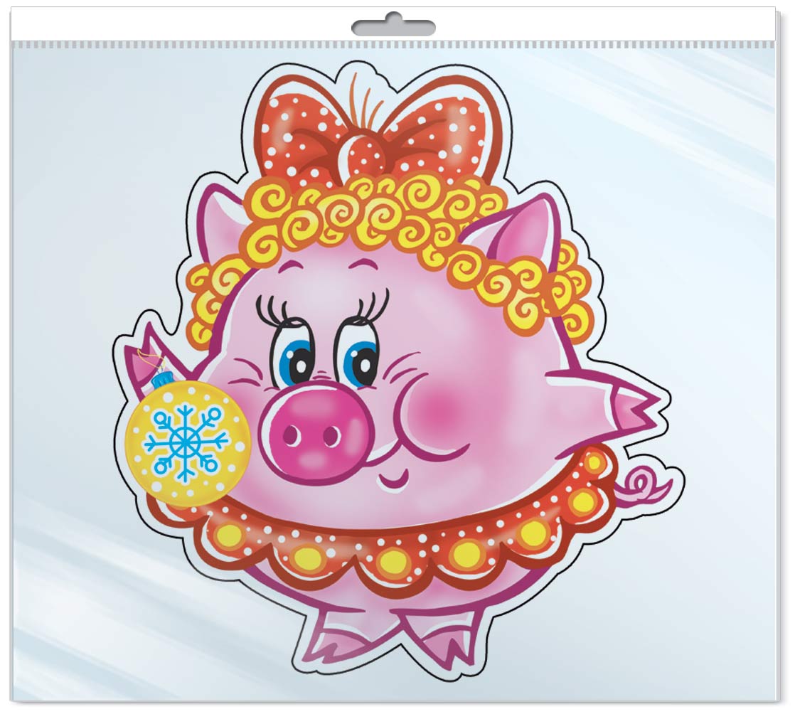 *ФМ-11430 ПЛАКАТ ВЫРУБНОЙ А4 В ПАКЕТЕ. Поросенок (блестки в лаке, в индивидуальной упаковке, с европодвесом и клеевым клапаном)