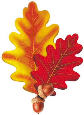 ФМ1-15612 Плакат вырубной А4. Листочки дубовые осенние - два листика, два желудя. Двухсторонний - тема Деревья