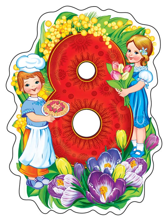 ФМ-13529 Плакат вырубной А4. Восьмерка - 8 Марта с цветами (с блестками в лаке)