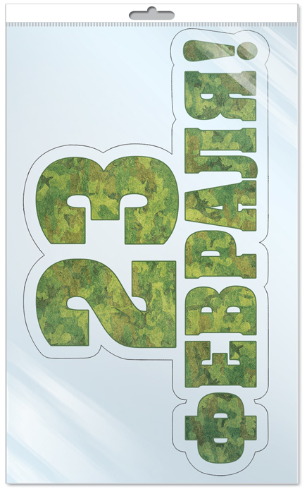 *ФМ-13547 ПЛАКАТ ВЫРУБНОЙ А4 В ПАКЕТЕ. 23 февраля (блестки в лаке, в индивидуальной упаковке, с европодвесом и клеевым клапаном)