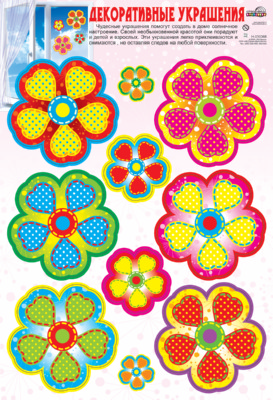 *Н-10366 НАКЛЕЙКИ А3 В ПАКЕТЕ. Декоративные украшения. Цветы (глянцевые, многоразовые, в индивидуальной упаковке, с европодвесом и клеевым клапаном)