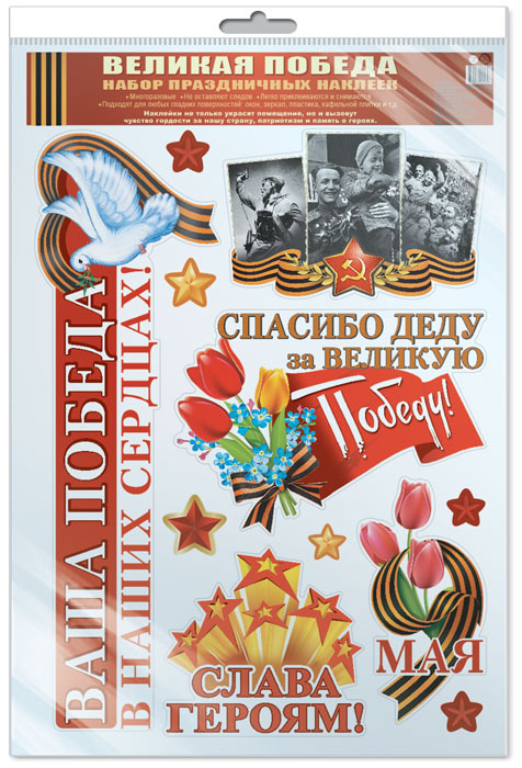 *Н-13242 НАКЛЕЙКИ А3+ В ПАКЕТЕ. Великая Победа! (УФ-лак, в индивидуальной упаковке, с европодвесом и клеевым клапаном)