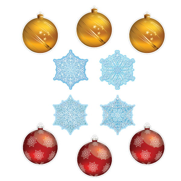 *КМ-17911 Комплект украшений со скотчем. Шары и снежинки (6 видов в комплекте: 2 вида по 3 шт., 4 вида по 1 шт.)