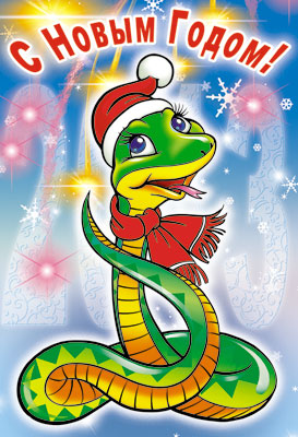 НТ-5933 Открытка среднего формата. С Новым годом! Веселая змея. Текст