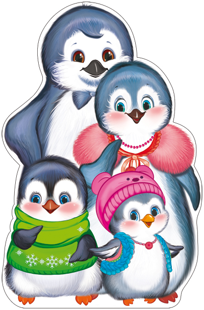 Ф-11081 Плакат вырубной А3. Семья пингвинов (с блестками в лаке) - группа Птицы
