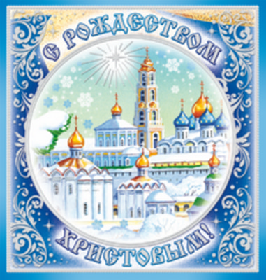 М-9962 Мини-открытка двойная. С Рождеством Христовым! (текст, золотаыя фольга)
