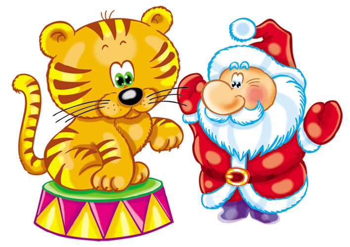 ФМ-13782 Плакат вырубной А4.Тигренок и дед мороз (блестки в лаке)