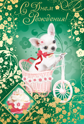 З-10149 Открытка среднего формата. С Днем рожденья! Текст (золотая фольга)