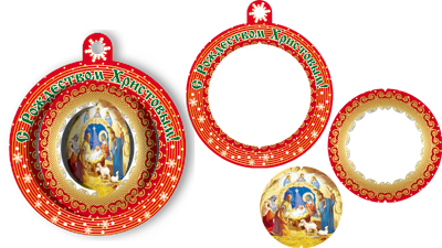 *М-13427 Складной новогодний шарик С Рождеством Христовым (3 элемента) в индивидуальной упаковке