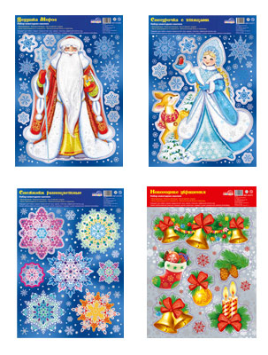 *КБН-13493 Комплект декоративных наклеек А4. Новый год (4 набора)