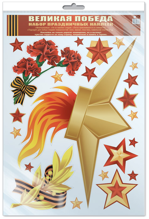 *Н-13325 НАКЛЕЙКИ А3+ В ПАКЕТЕ. Великая Победа! (УФ-лак, в индивидуальной упаковке, с европодвесом и клеевым клапаном)