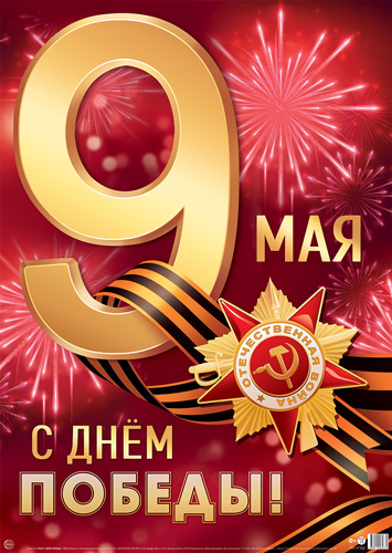 *ПЛ-17162 ПЛАКАТ А2. 9 Мая. С Днем Победы! (в индивидуальной упаковке, с европодвесом и клеевым клапаном)