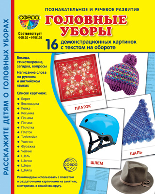 Дем. картинки СУПЕР Головные уборы 16 демонстрационных картинок с текстом на обороте (учебно-методическое пособие с комплектом демонстрационного материала 173х220 мм, познавательное и речевое развитие)