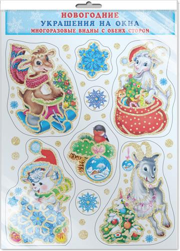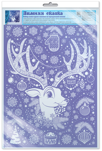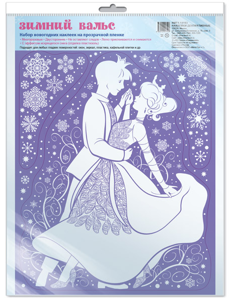 *НМТ1-14193 Новогодние наклейки на окна А4+. Принц с Принцессой (пластизоль, многоразовые, в индивидуальной упаковке, с европодвесом и клеевым клапаном)