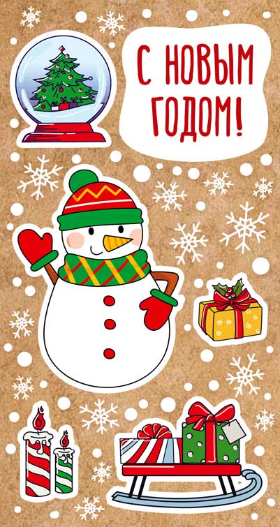 НТ-12971 Открытка евроформата. С Новым годом! Без текста (пластизоль, крафт-картон)