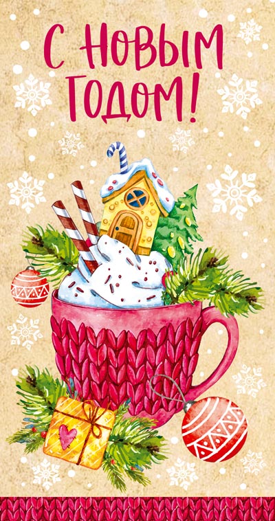НТ-14034 Открытка евроформата. С Новым годом! (текст, блестки в лаке)