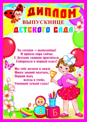 Ш-9492 Диплом выпускнице детского сада (для принтера, картон 190 г