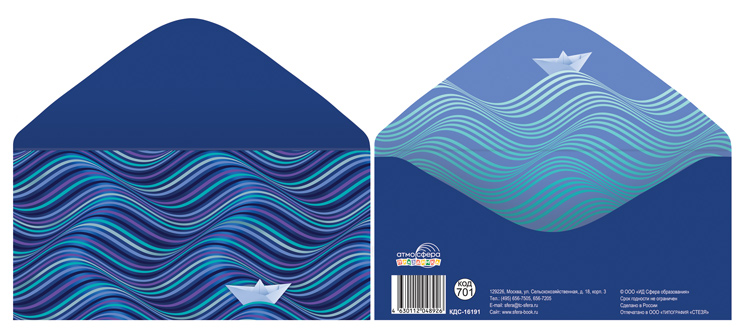КДС-16191 Конверт для денег на склейке. Без надписи. (мужской, волны, кораблик)