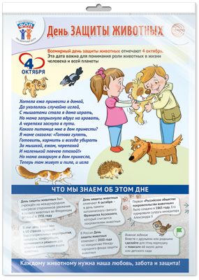 ПЛ-15527 Плакат А3+. Праздничные даты по ФОП: 4 октября - День защиты животных