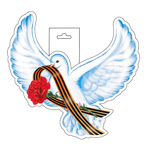 М-16003 Вырубная фигурка. Голубь с гвоздикой и георгиевской лентой (двухсторонняя, ВД-лак)