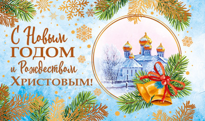 МО-13965 Открытка.С Рождеством Христовым и Новым Годом! (золотая фольга) 140х85 мм
