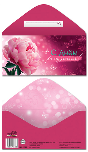 КДС-17380 Конверт для денег на склейке. С Днем рождения! (женский)