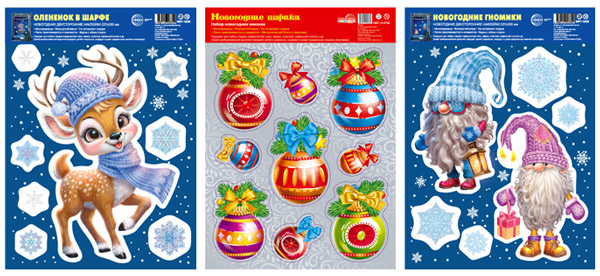 НМТ1-17511 Новогодние наклейки на окна А4+. Снежинки волшебные (видны с обеих сторон, многоразовые)