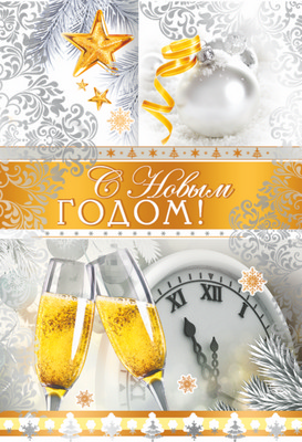 НТ-9927 Открытка среднего формата С Новым годом! Текст (серебряная фольга)